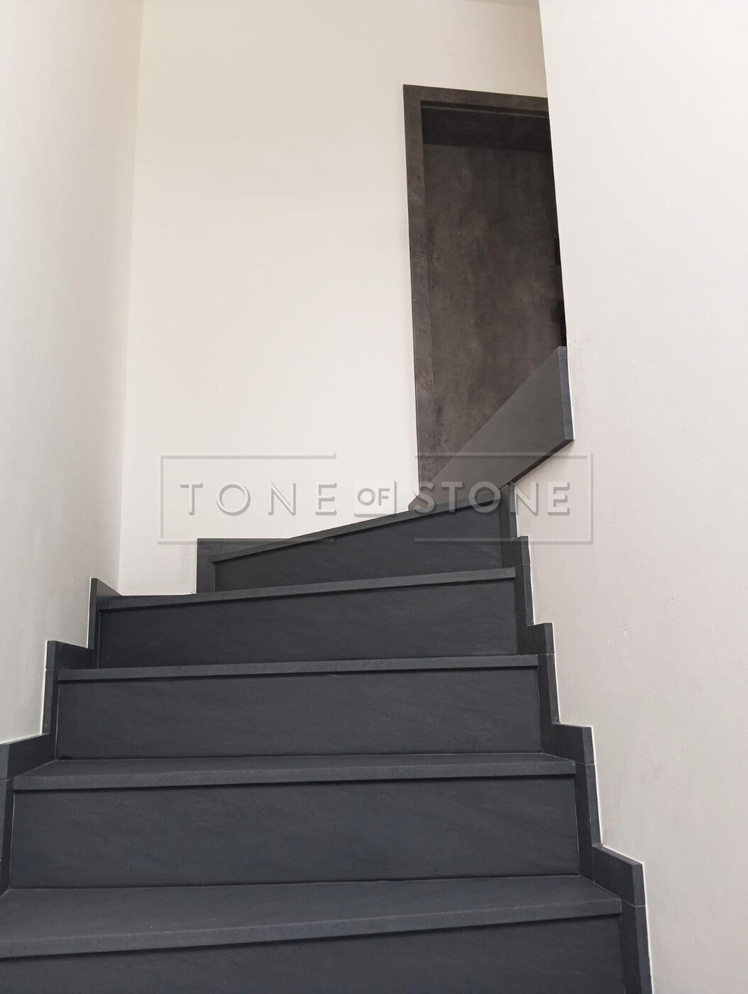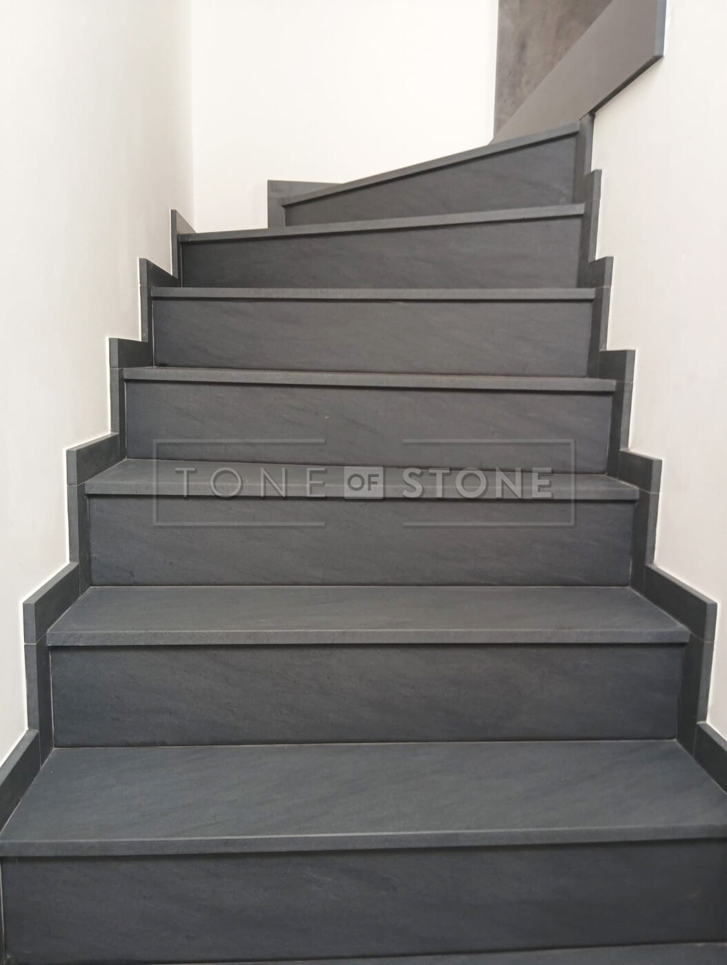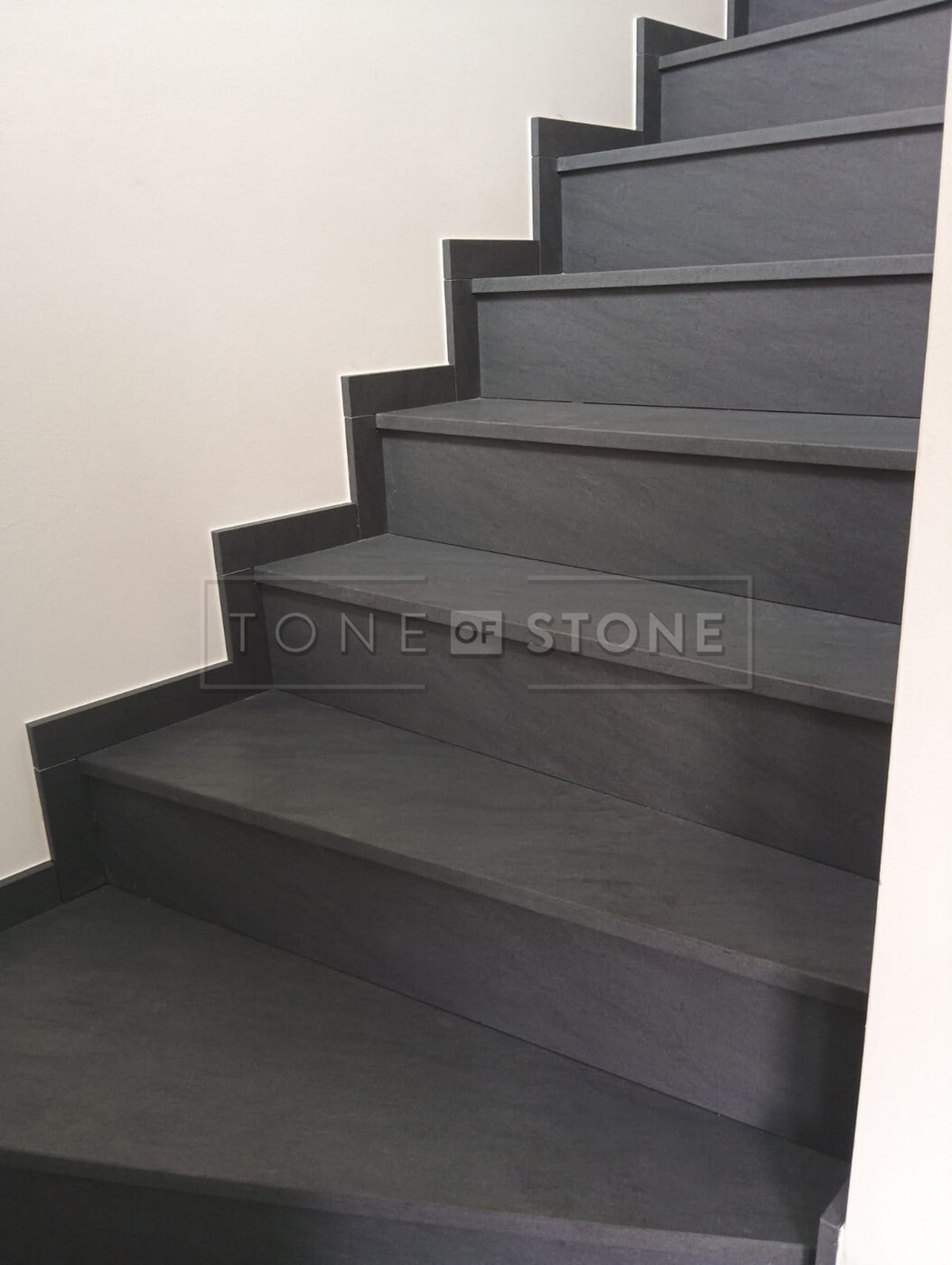 Při této realizaci byl kladen důraz na plynulý přechod kresby žuly po jednotlivých schodech. Díky preciznímu opracování tvoří celé schodiště z šedé žuly Carbon Grey jako harmonický celek, který přirozeně navazuje na okolní interiér. Výsledkem je prvek interiéru, který zaujme na první pohled, ale zároveň působí nadčasově a přirozeně.