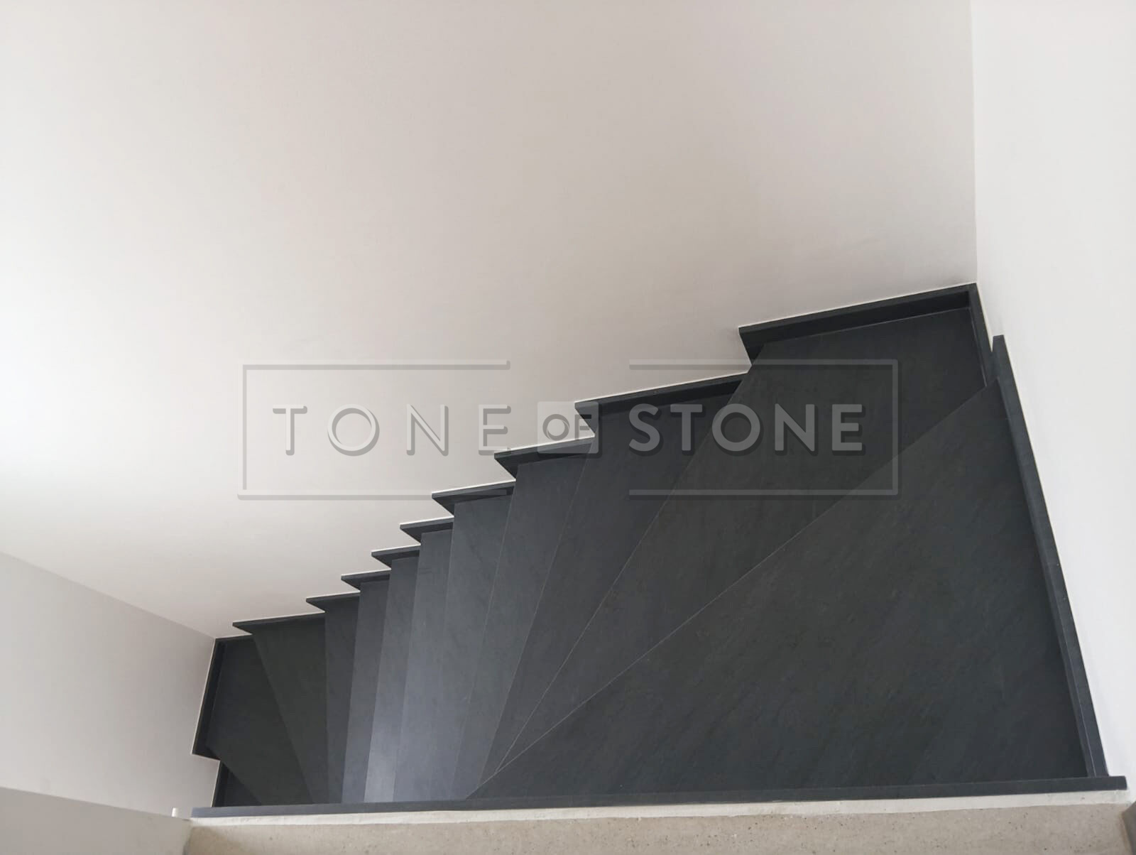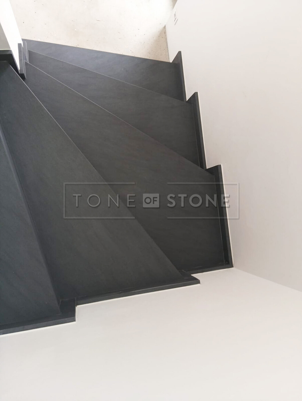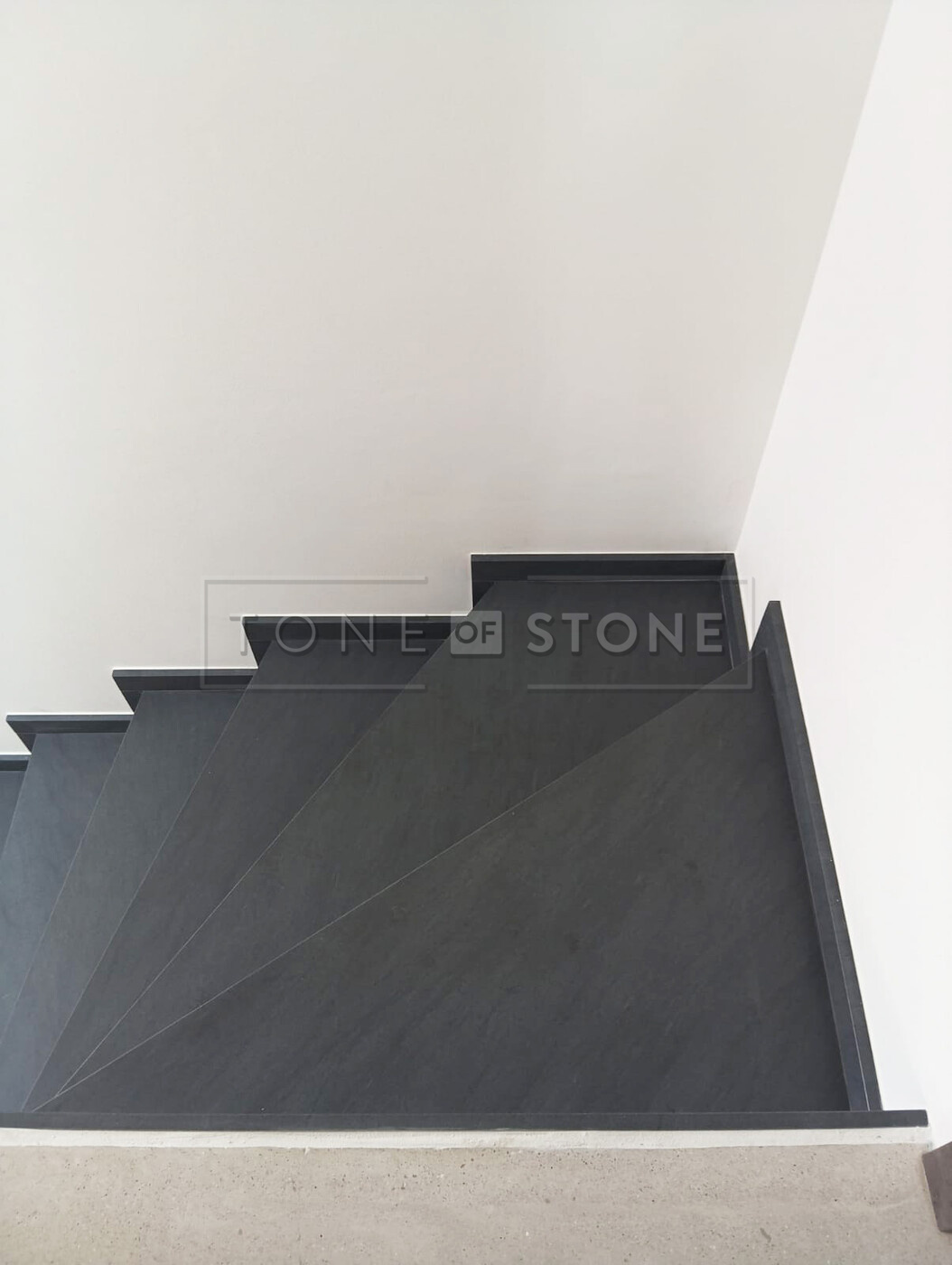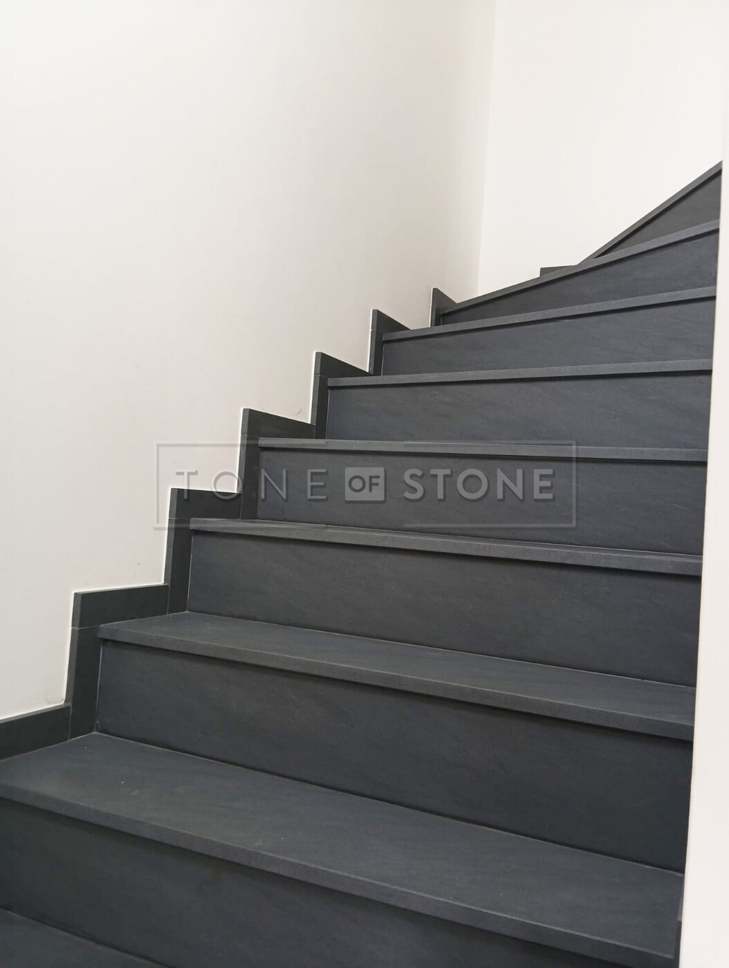 Při této realizaci byl kladen důraz na plynulý přechod kresby žuly po jednotlivých schodech. Díky preciznímu opracování tvoří celé schodiště z šedé žuly Carbon Grey jako harmonický celek, který přirozeně navazuje na okolní interiér. Výsledkem je prvek interiéru, který zaujme na první pohled, ale zároveň působí nadčasově a přirozeně.