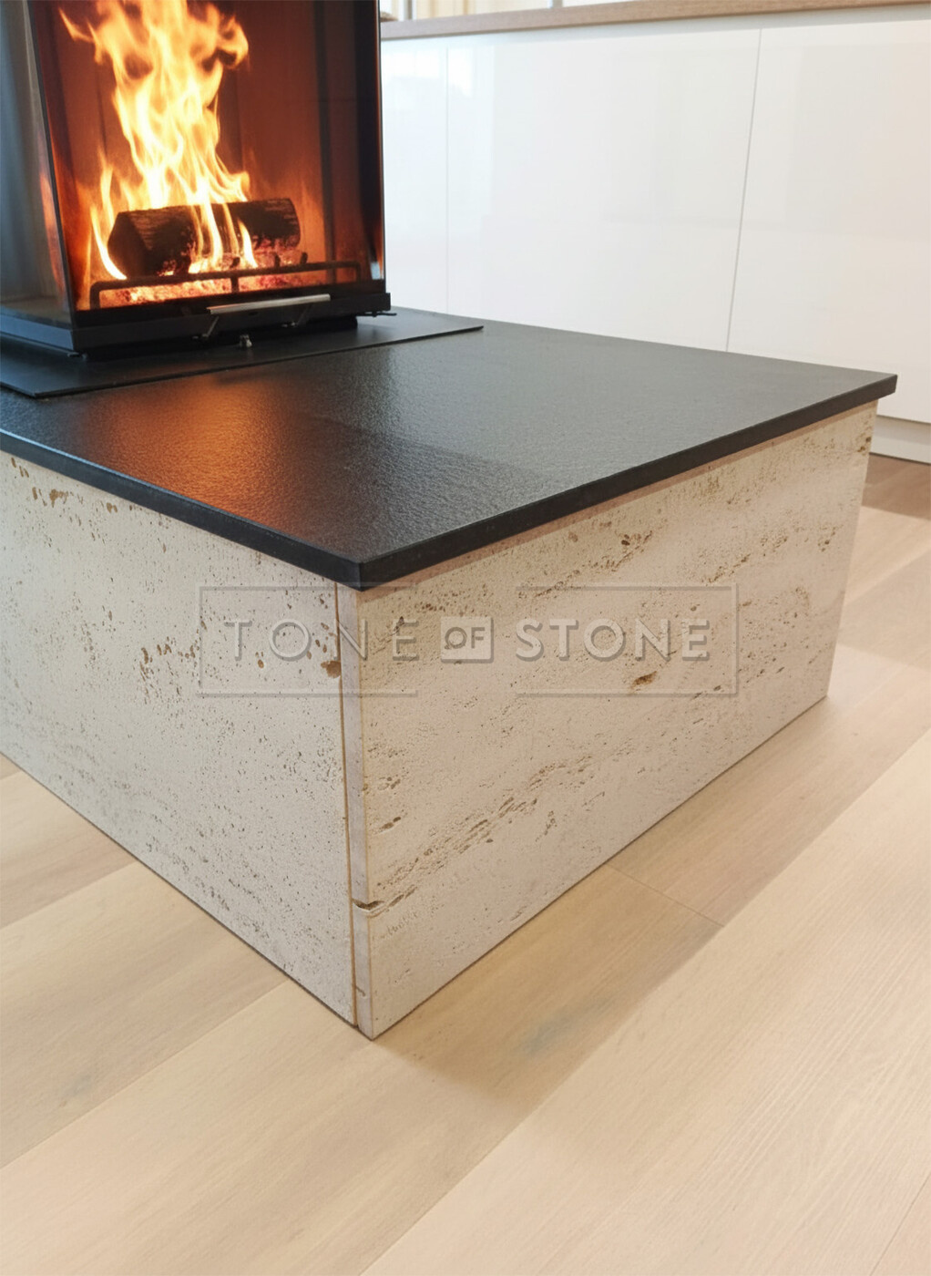 Prohlédněte si odpovědi na časté dotazyna téma: Realizace obkladu krbu a krbové římsy z přírodního kamene Travertino Romano Classico a Nero Assoluto Zimbabwe