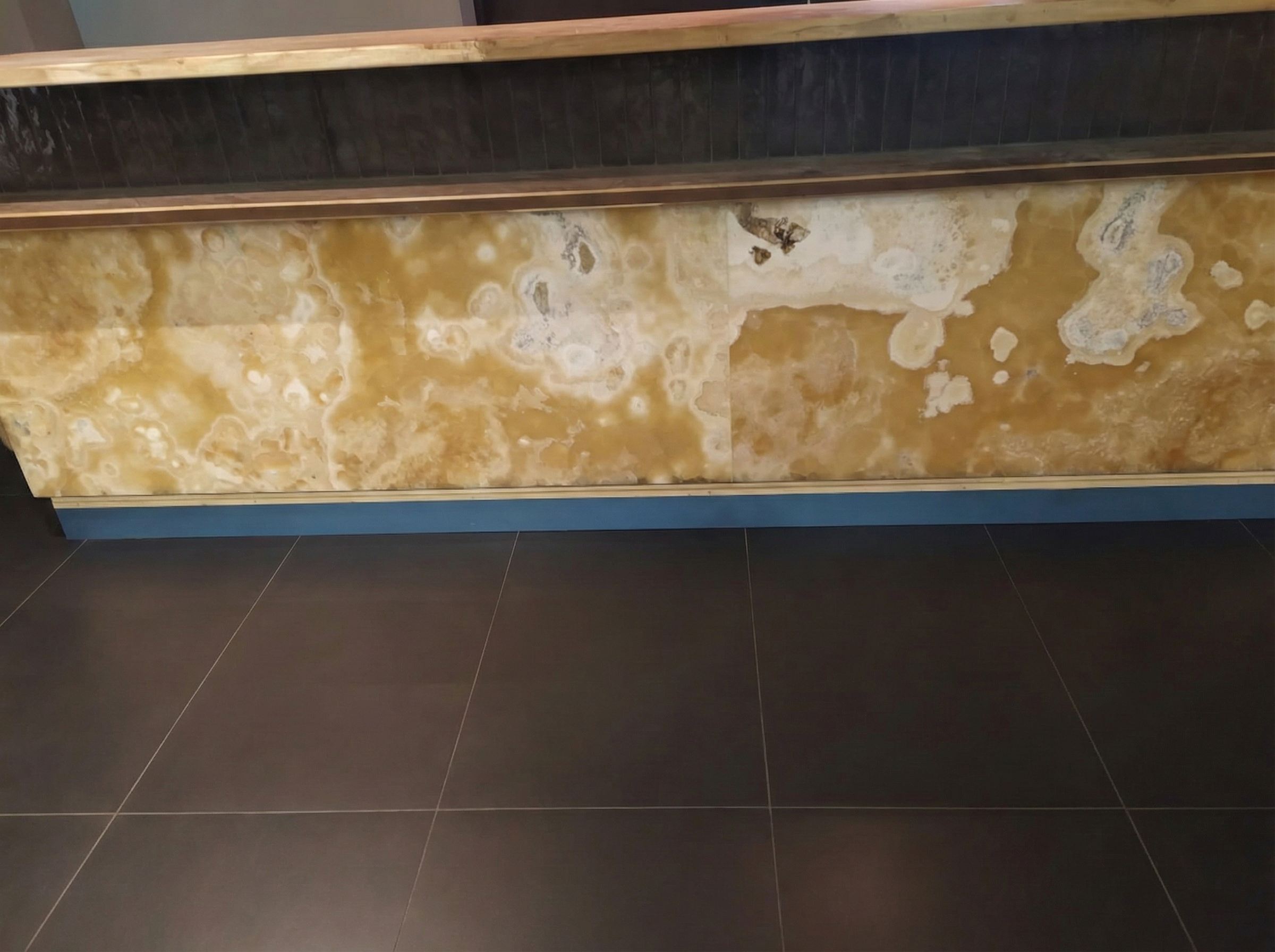 Realizace prosvíceného barového obkladu z onyxu - Onyx Miele
