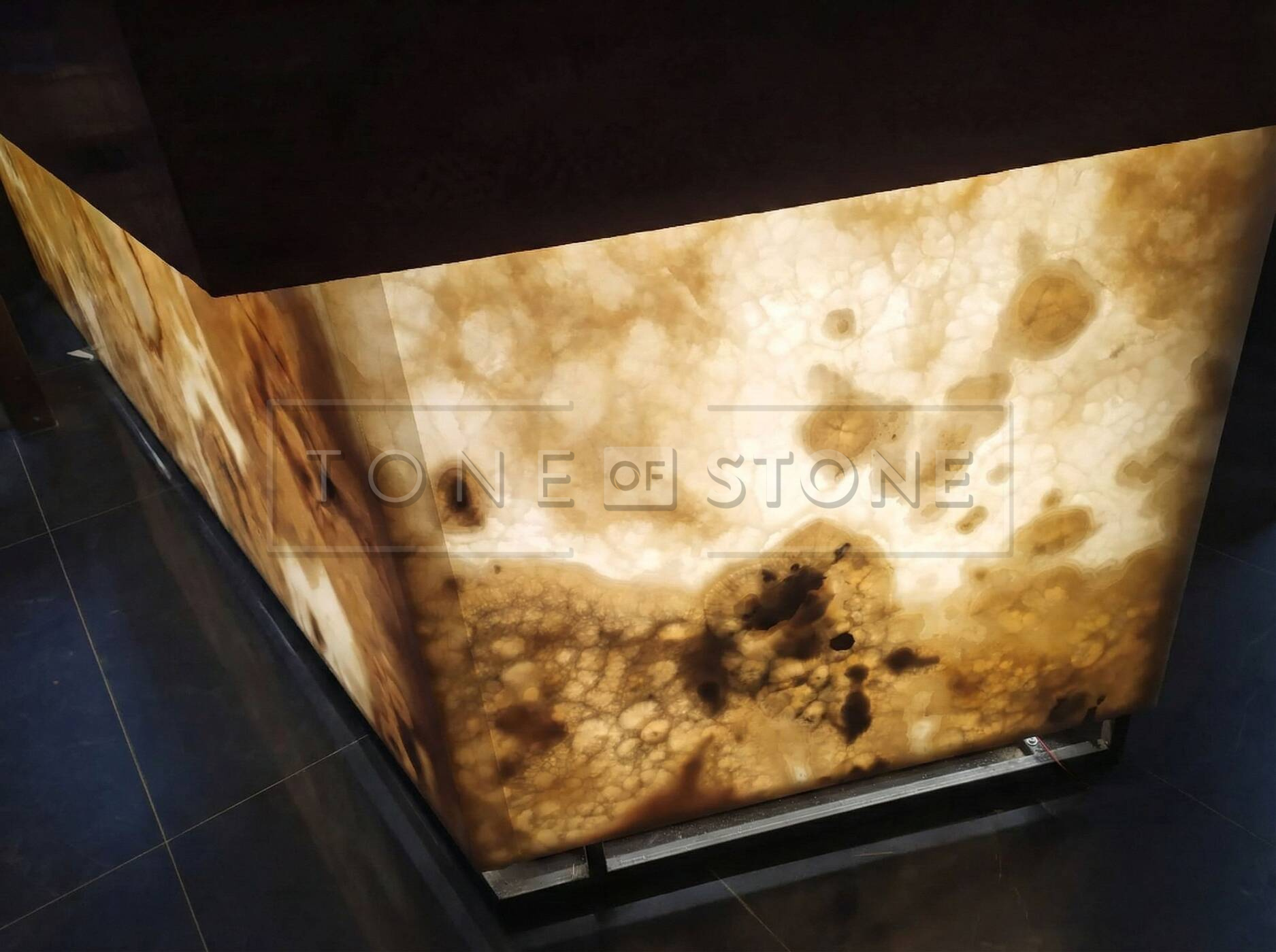 Jednou z hlavních předností onyxu je jeho přirozená částečná průsvitnost. Díky tomu je ideálním materiálem pro prosvícené kamenné obklady, které dokážou interiér zcela proměnit.