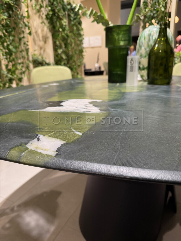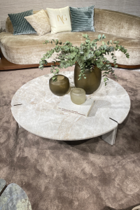 Nábytek prezentovaný na veletrhu často využíval kombinace různých materiálů, což vedlo k vytvoření kontrastních struktur, které zdůraznily řemeslnou zručnost a kreativní přístup designérů. Velké téma přírodního kamene na veletrhu byly povrchové úpravy mramoru, travertinu nebo kvarcitu. Kartáčovaná povrchová úprava zvýrazní kresbu kamene a dodává mu hloubku a originální vzhled.
