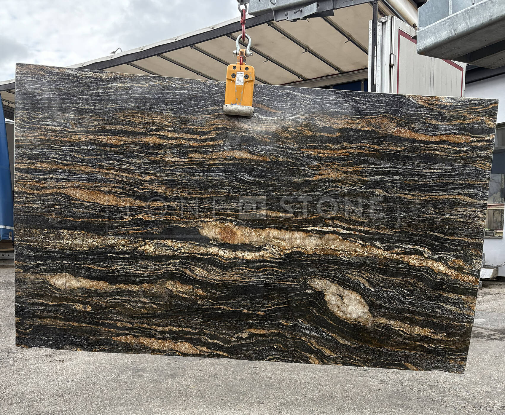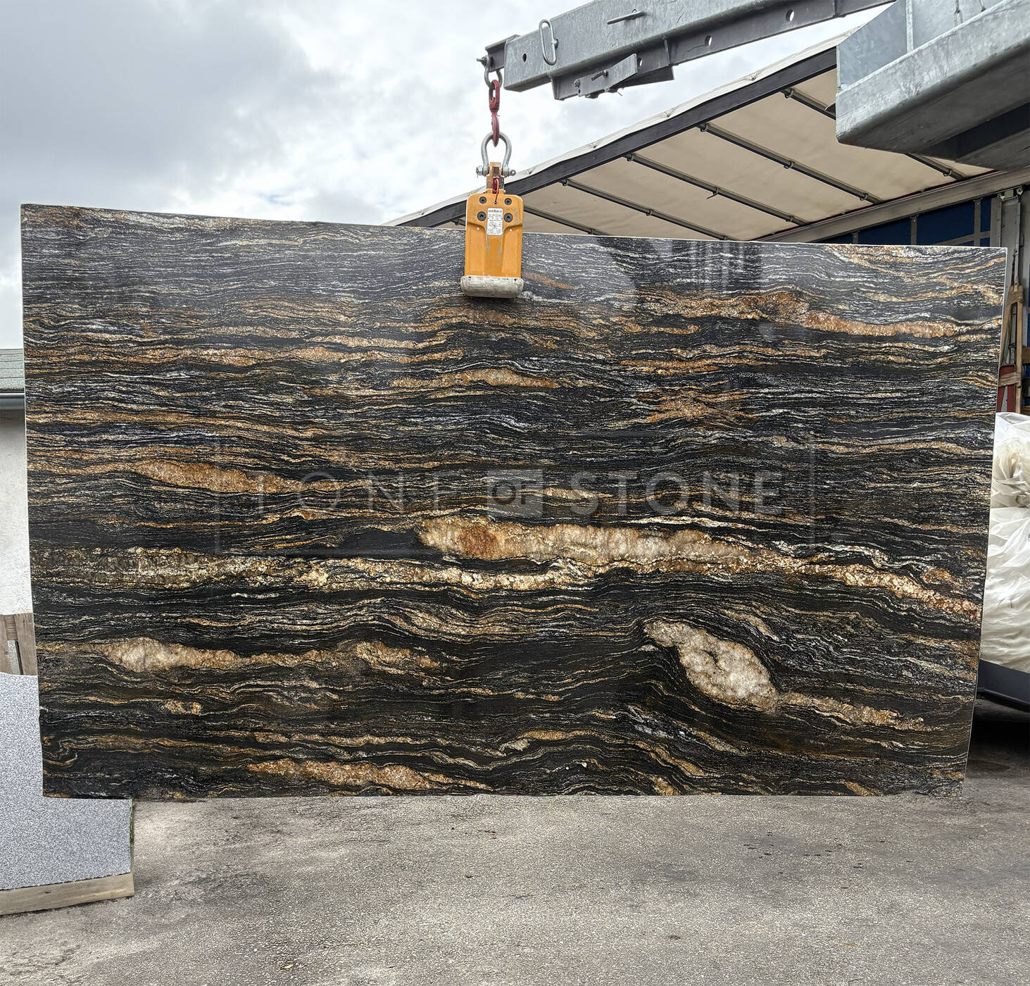 Žula Magma Black je luxusní přírodní kámen pocházející z Brazílie a charakteristická svým černým až antracitovým podkladem s výraznými zlatými, žlutými či bronzovými žilkami. Díky své odolnosti je ideální volbou pro kamenné pracovní desky, kamenné koupelnové desky, kamenné obklady stěn, kamenné parapety nebo kamenný obklad krbu.