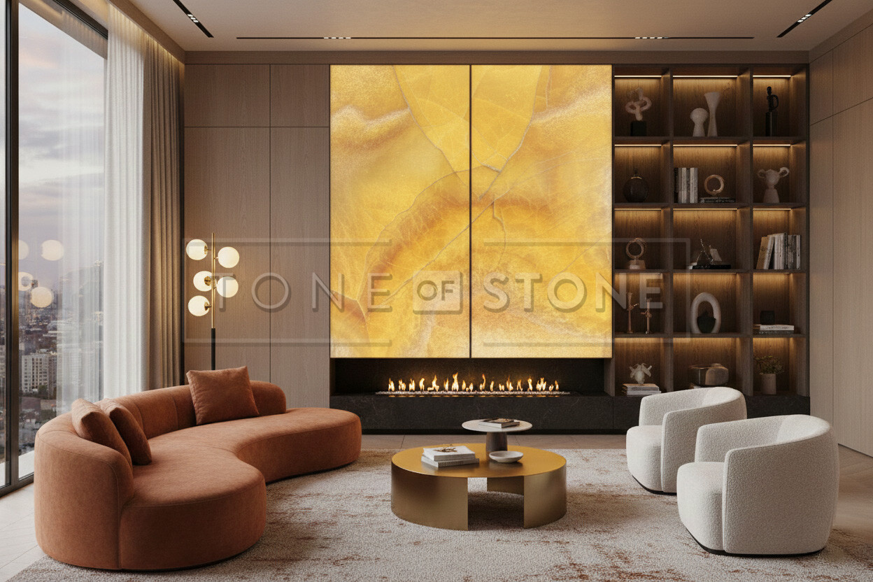Moderní obložení krbu přírodním kamenem: Travertin, žula, onyx nebo mramor?