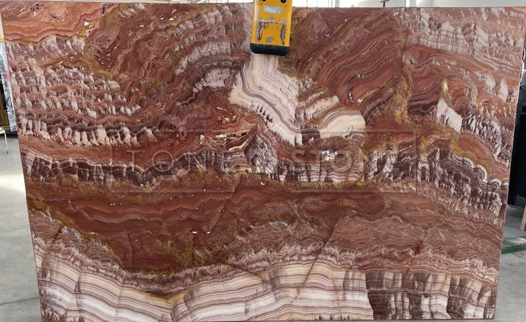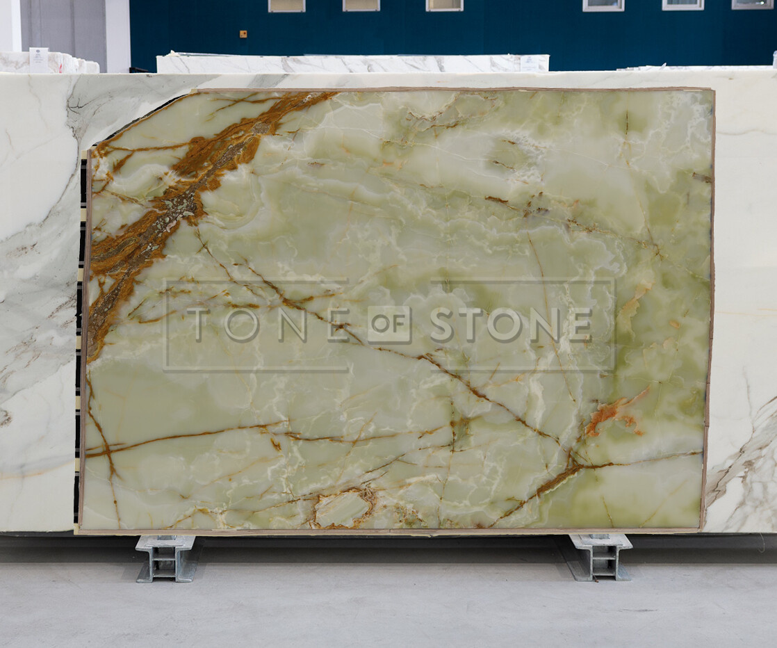 Onyx je neprůhledná, poloprůsvitná odrůda křemene, forma chalcedonitu, achátu či karneolu. Vzniká v dutinách hornin při nízkých teplotách. Jedná se o polodrahokam, který je schopen rozzářit celý interiér. Onyx nabízí celou řadu barevných variacístruktur, díky čemuž je každý kus naprosto jedinečný.